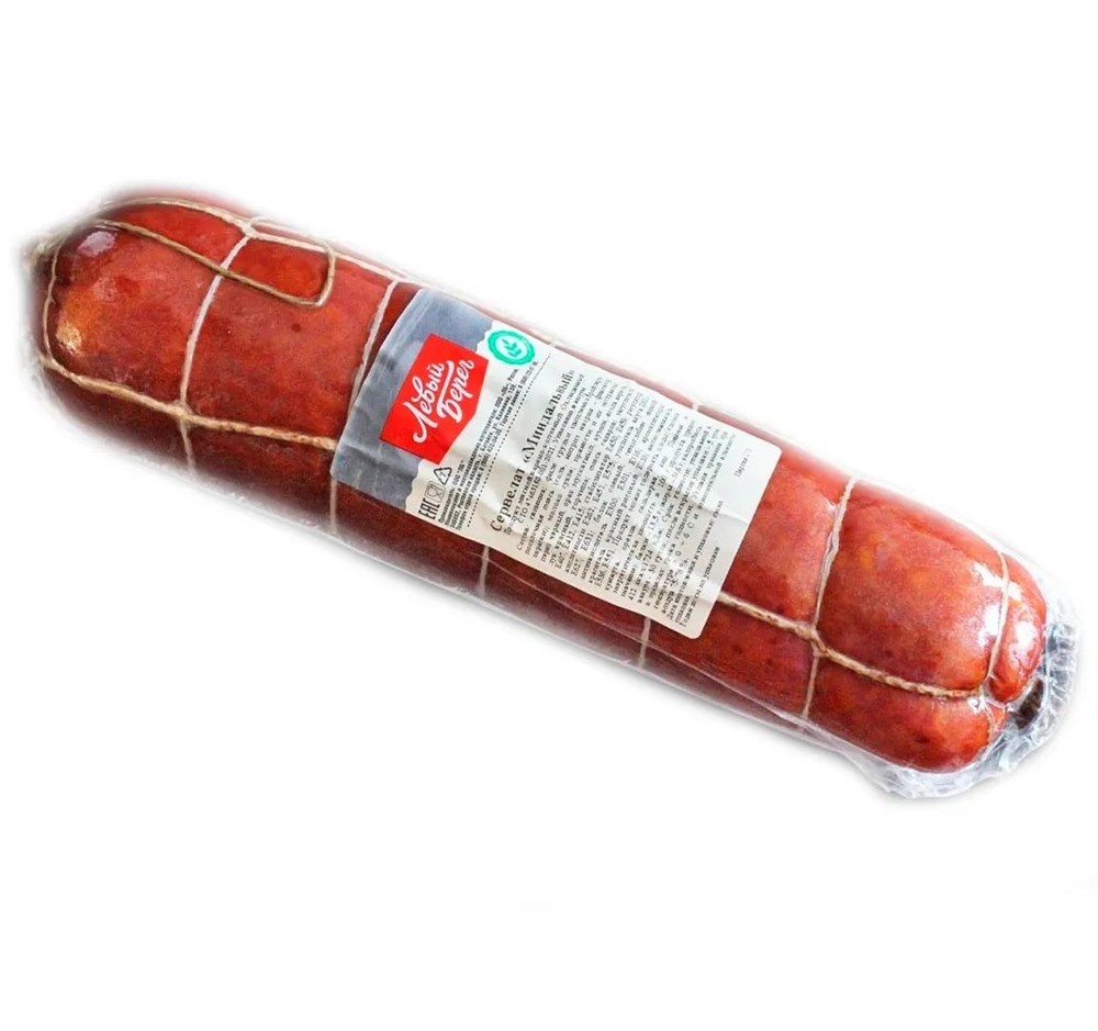 Сервелат "Миндальный" варено-копченый "Левый Берег" - это сорт колбасы с характерным пестрым рисунком на срезе. Особенность сервелата – оригинальный вкус за счет удачно подобранного букета ароматных специй.